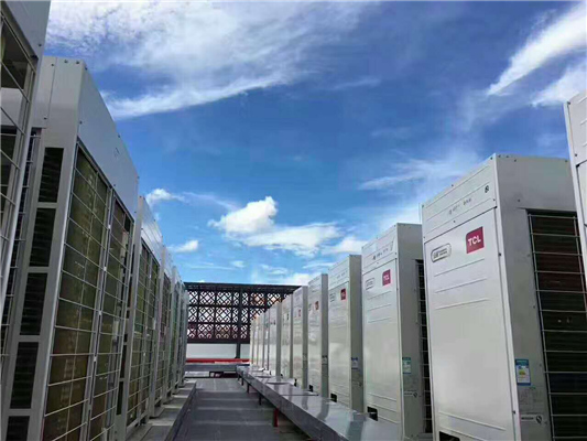 (2)外機(jī)是關(guān)鍵部分,從構(gòu)造上來看,它主要是由風(fēng)冷冷凝器和壓縮機(jī)組成。當(dāng)系統(tǒng)處于低負(fù)荷時(shí),通過變頻控制器控制壓縮機(jī)轉(zhuǎn)速,使系統(tǒng)內(nèi)冷媒的循環(huán)流量得以改變,從而對(duì)制冷量進(jìn)行自動(dòng)控制以符合使用要求。對(duì)容量較小的機(jī)組,通常只設(shè)一臺(tái)變速壓縮機(jī);而對(duì)于容量較大的機(jī)組,則一般采用一臺(tái)變速壓縮機(jī)與一臺(tái)或多臺(tái)定速壓縮機(jī)聯(lián)合工作的方式。